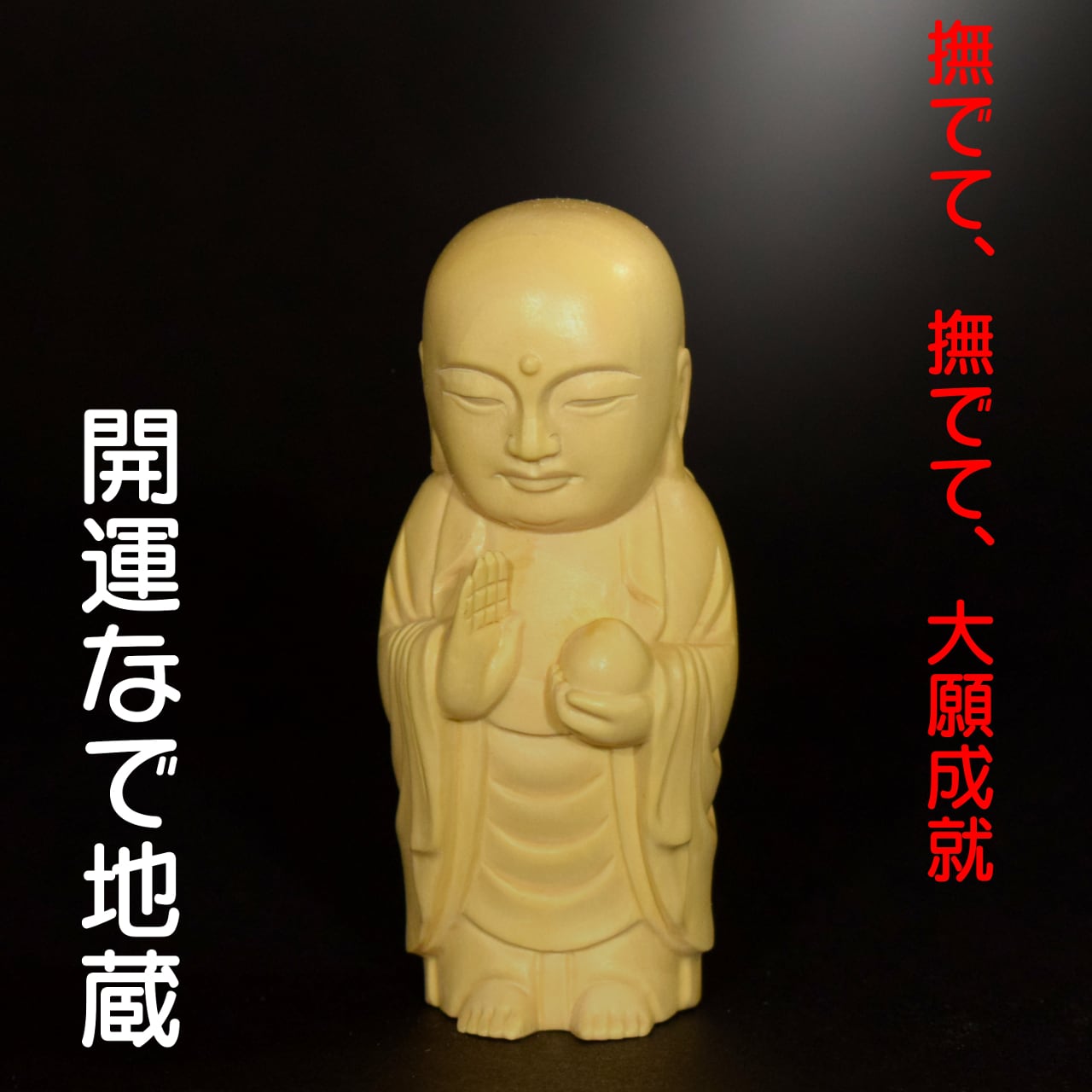 この開運「なで地蔵」は、片手にすっぽりおさまる黄楊彫刻のお地蔵様。日々撫でることでお地蔵様のご利益を得られる懐中御守りです。